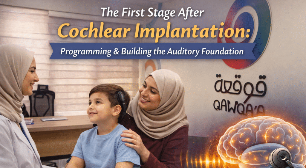 Blog / Blog Details The First Stage After Cochlear Implantation: Programming and Building the Auditory Foundation By abdalrahman.alhaymouni@gmail.com أكتوبر 31, 2025 Uncategorized The First Stage After Cochlear Implantation: Programming and Building the Auditory Foundation After cochlear implant surgery, a new and critical chapter begins in the child’s auditory journey. This stage is just as […]