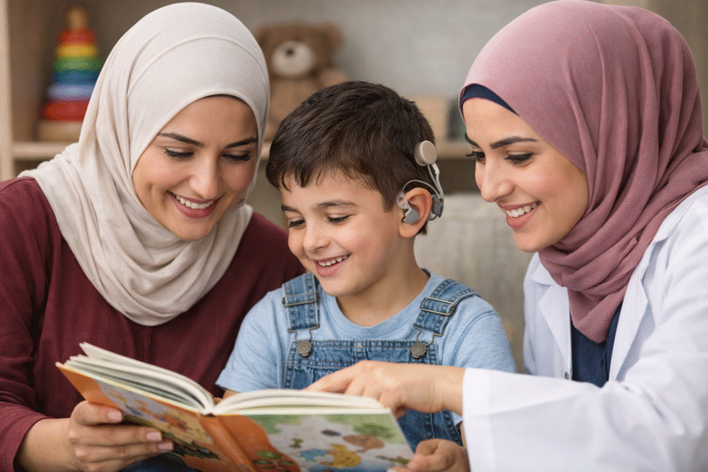 Blog / Blog Details The Importance of Story Reading for Children with Hearing Loss and Cochlear Implants By abdalrahman.alhaymouni@gmail.com January 10, 2026 Uncategorized The Importance of Story Reading for Children with Hearing Loss and Cochlear Implants Story reading is often considered a recreational or supplementary activity in a child’s daily routine. However, for children with […]